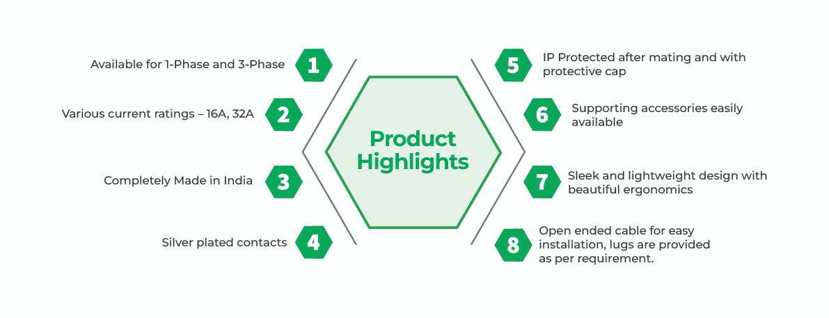 We create durable, reliable, safe, cost-effective, 100% Make in India receptacles for EV vehicle charging infrastructure.